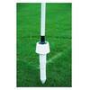- Kit de poteaux réglementaires en tube PVC avec manchon noir articulé en caoutchouc et une base support fixe à enfoncer dans le sol.